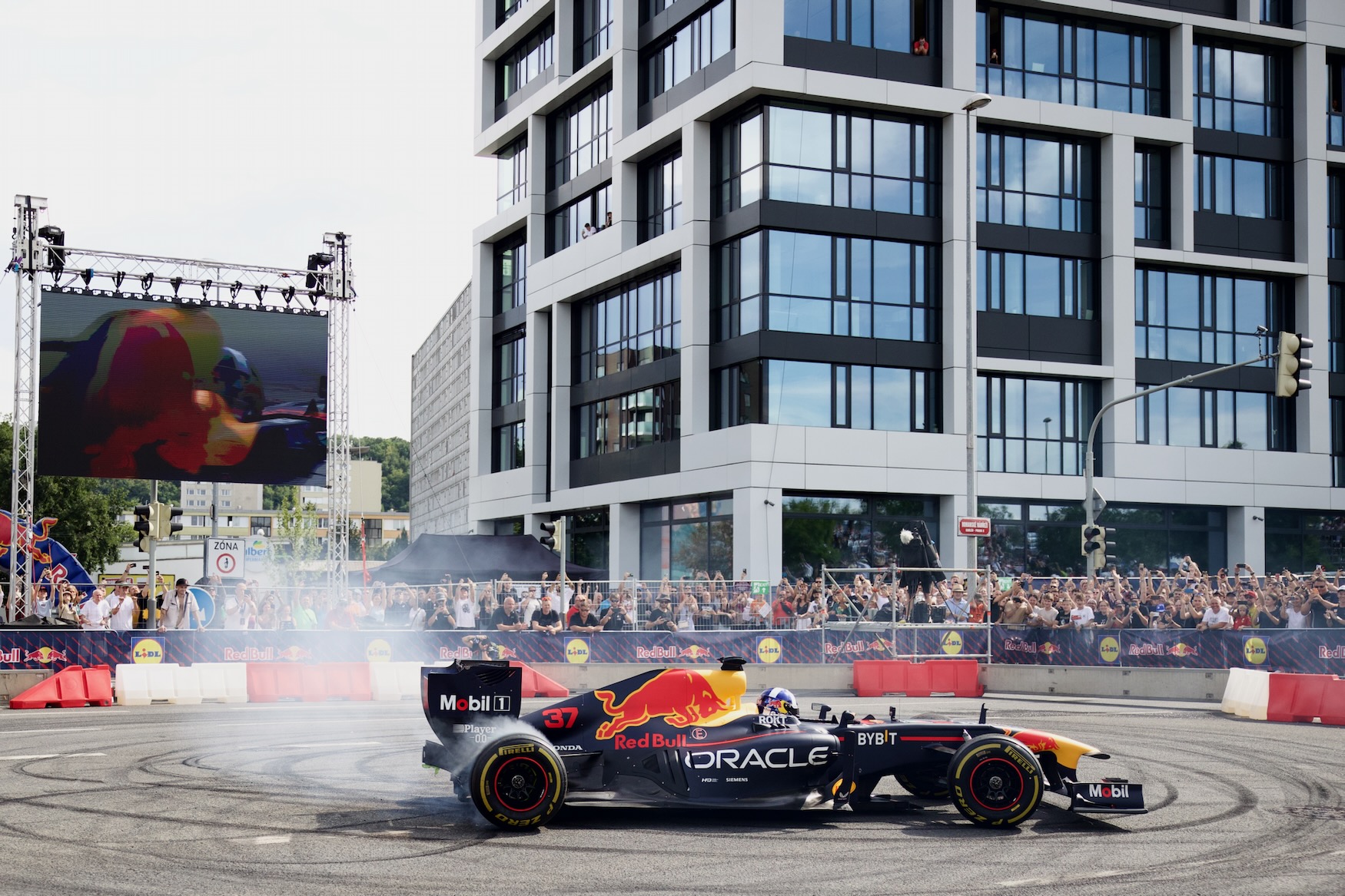 Když jsem se dověděla, že k nám dorazí tým Red Bull Racing se svou show, bylo mi jasné, že tam nemohu chybět. David Coulthard tam proháněl monopost RB7, s nímž se stal Sebastian Vettel mistrem světa, motocyklový kaskadér Aras Gibieža, drifty.