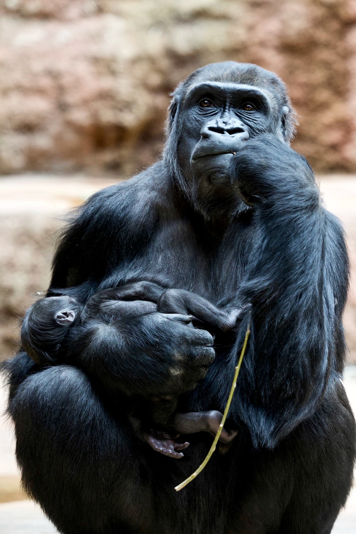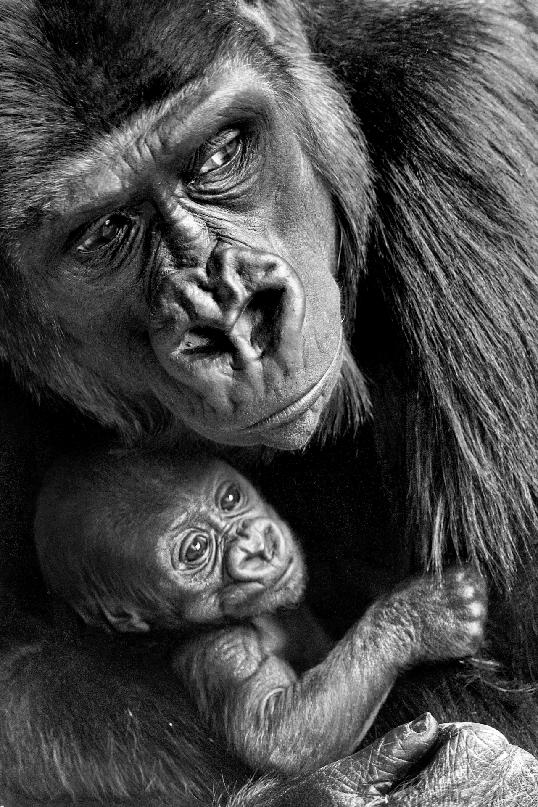 Ono se řekne, fotografko, zachyť život, emoce! A tak jsem fotila gorilí holčičku Mobi v pražské ZOO. No, emoce najevo nedávala, držela se mámy (nebo spíš ta ji žárlivě a trpělivě držela) a matka?